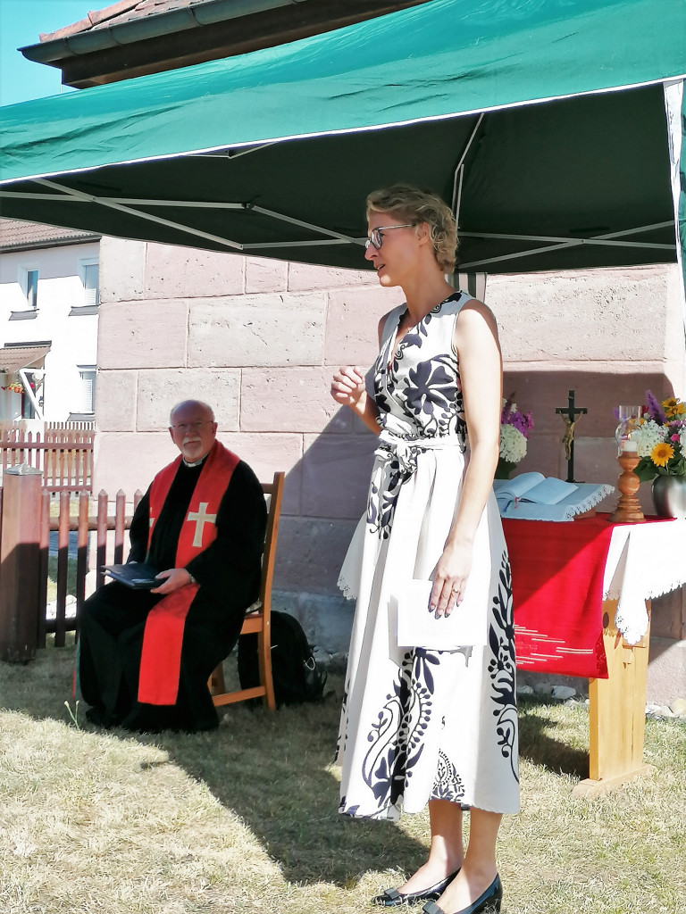 Den Festgottesdienst hielt Pfarrer Eyring aus Nürnberg. In dem Gottesdienst wurden auch einige langjährige Bläserinnen und Bläser geehrt.